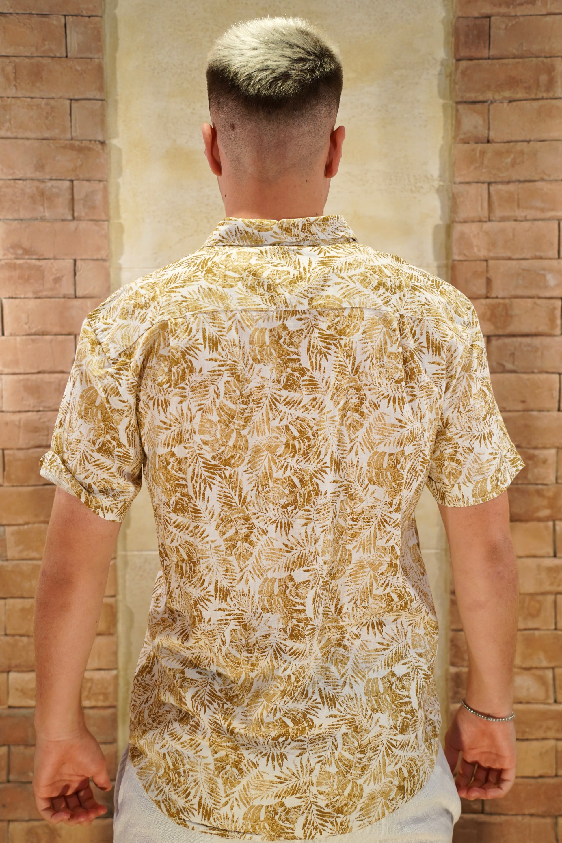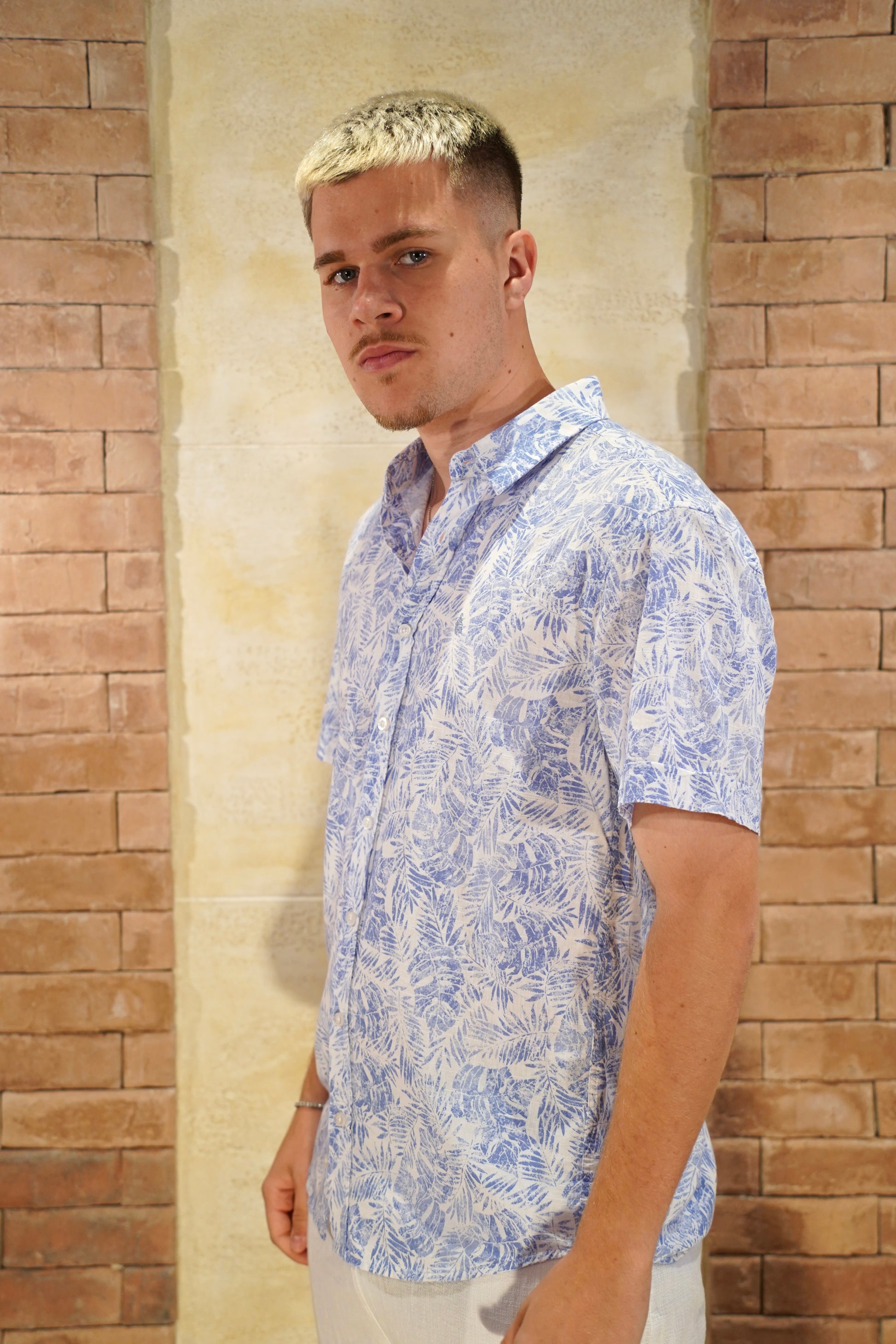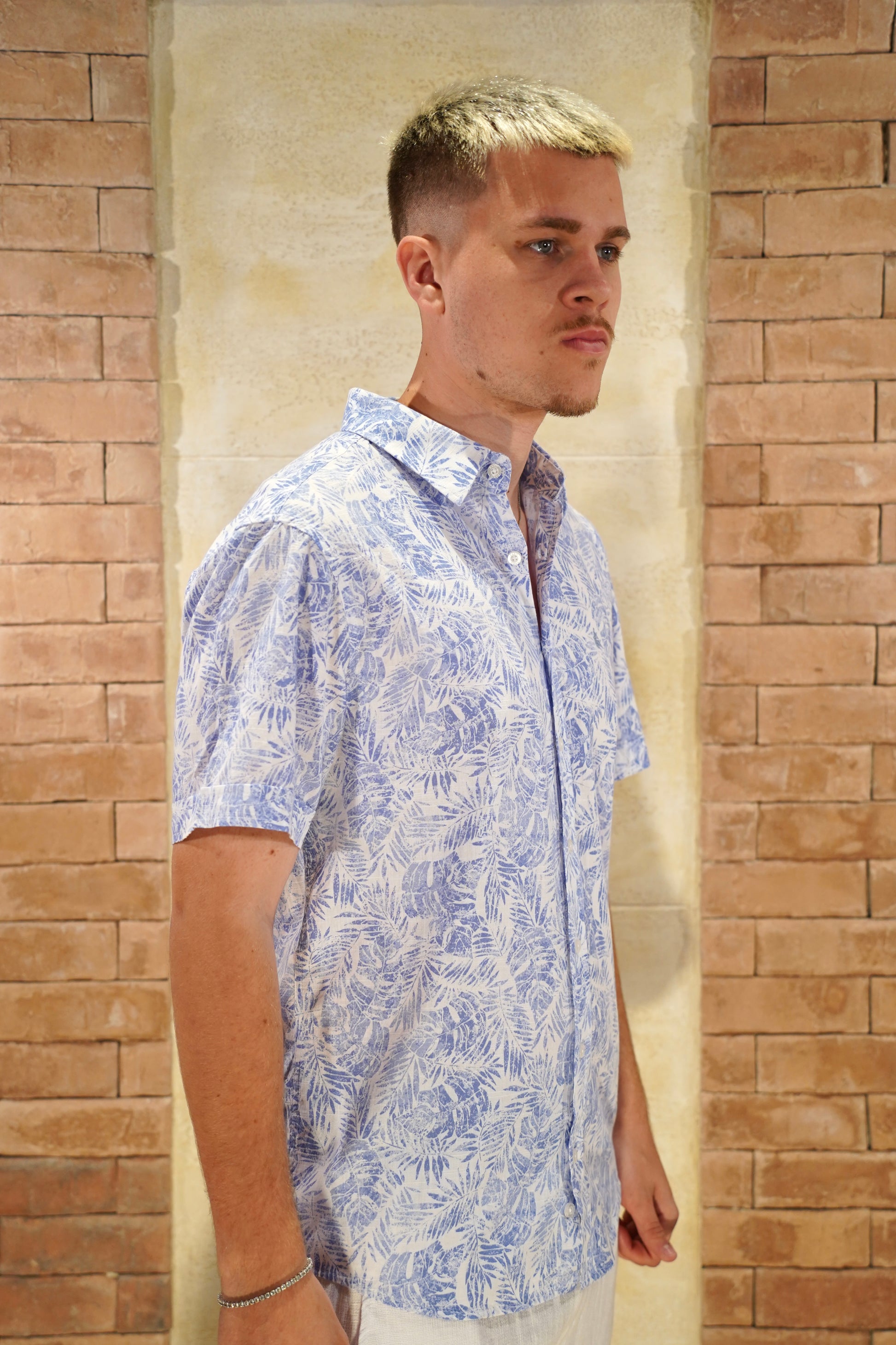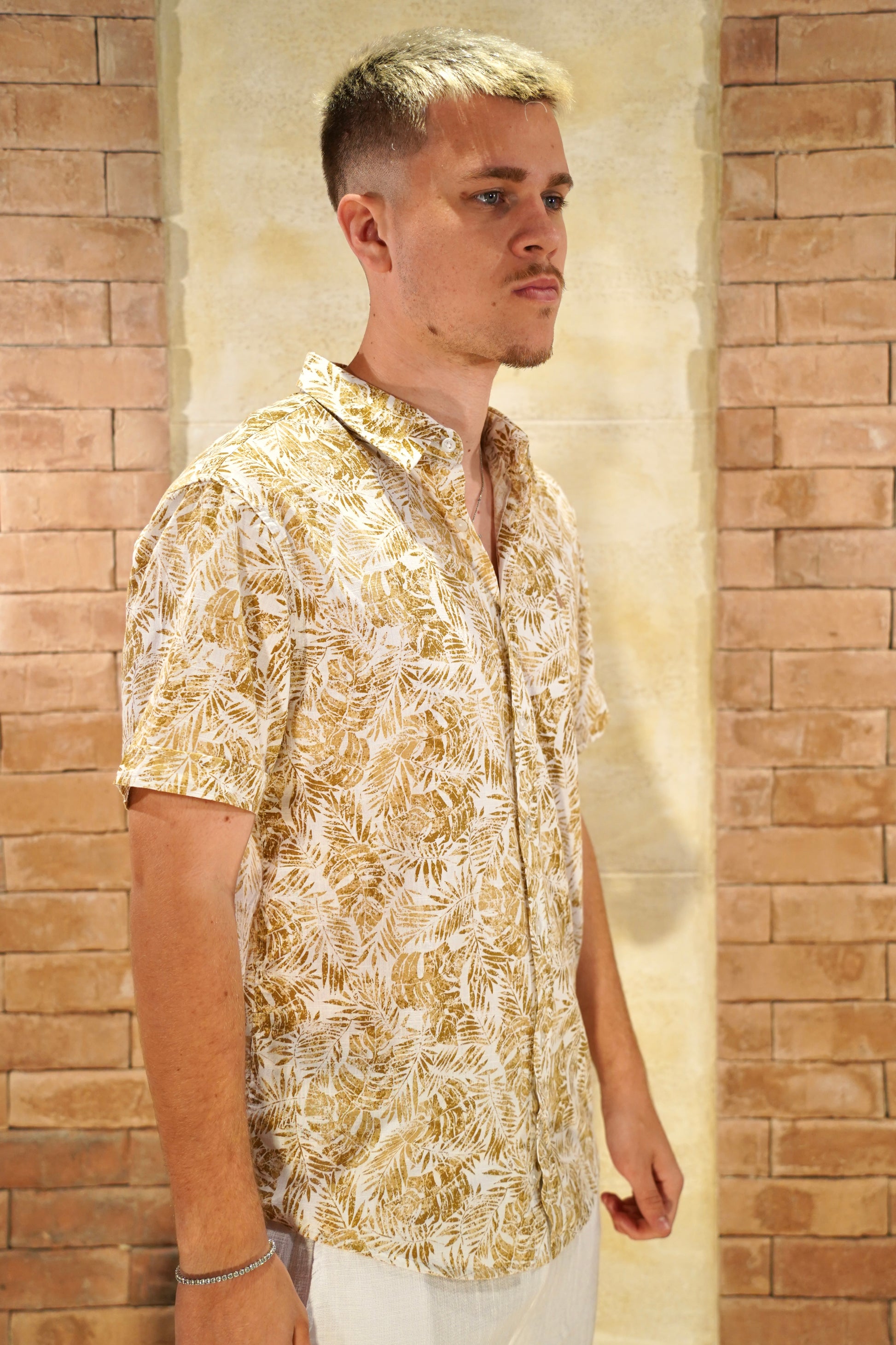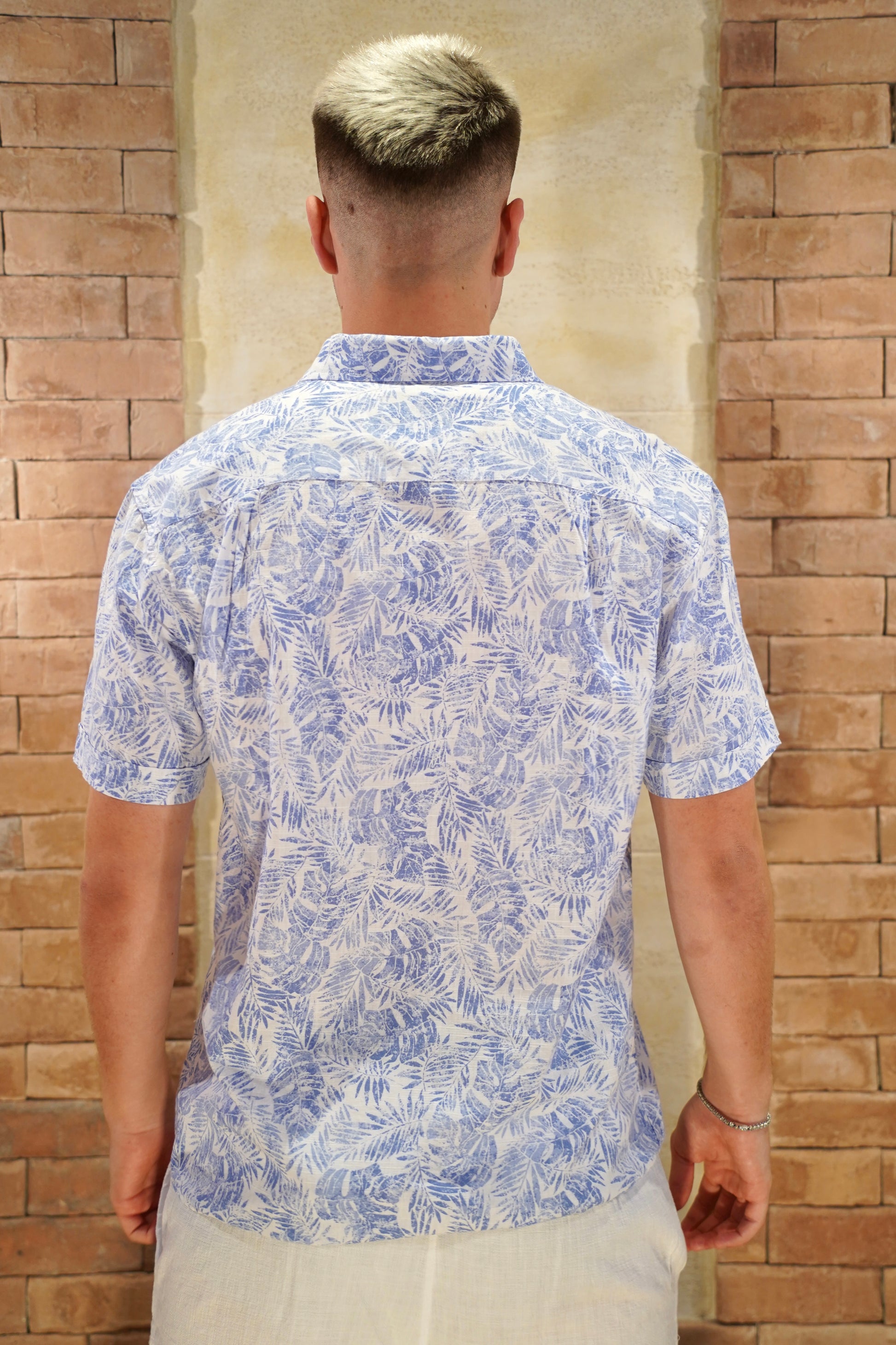 The FYC-169 shirt combines a sophisticated floral pattern with short sleeves, crafted from a lightweight cotton-linen blend for breathability and comfort. Its regular fit offers a polished yet relaxed silhouette, perfect for elevating your everyday wardrobe with effortless style.