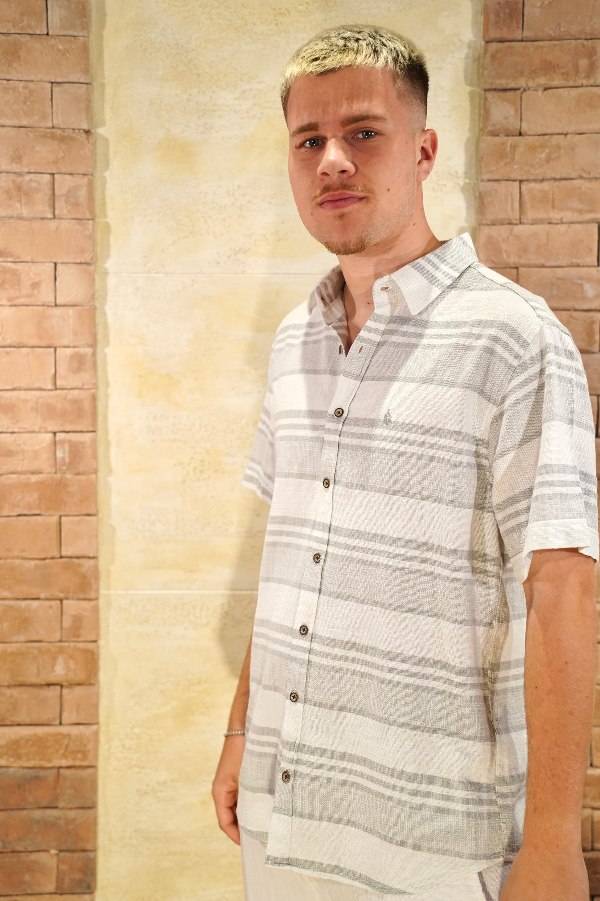 Experience timeless elegance with the FYC-301 shirt, crafted from a refined cotton-linen blend for breathable comfort. Featuring subtle horizontal stripes and a discreet small logo, this piece offers a polished look with a regular fit that ensures effortless style and ease throughout your day. Perfect for those who appreciate understated sophistication.