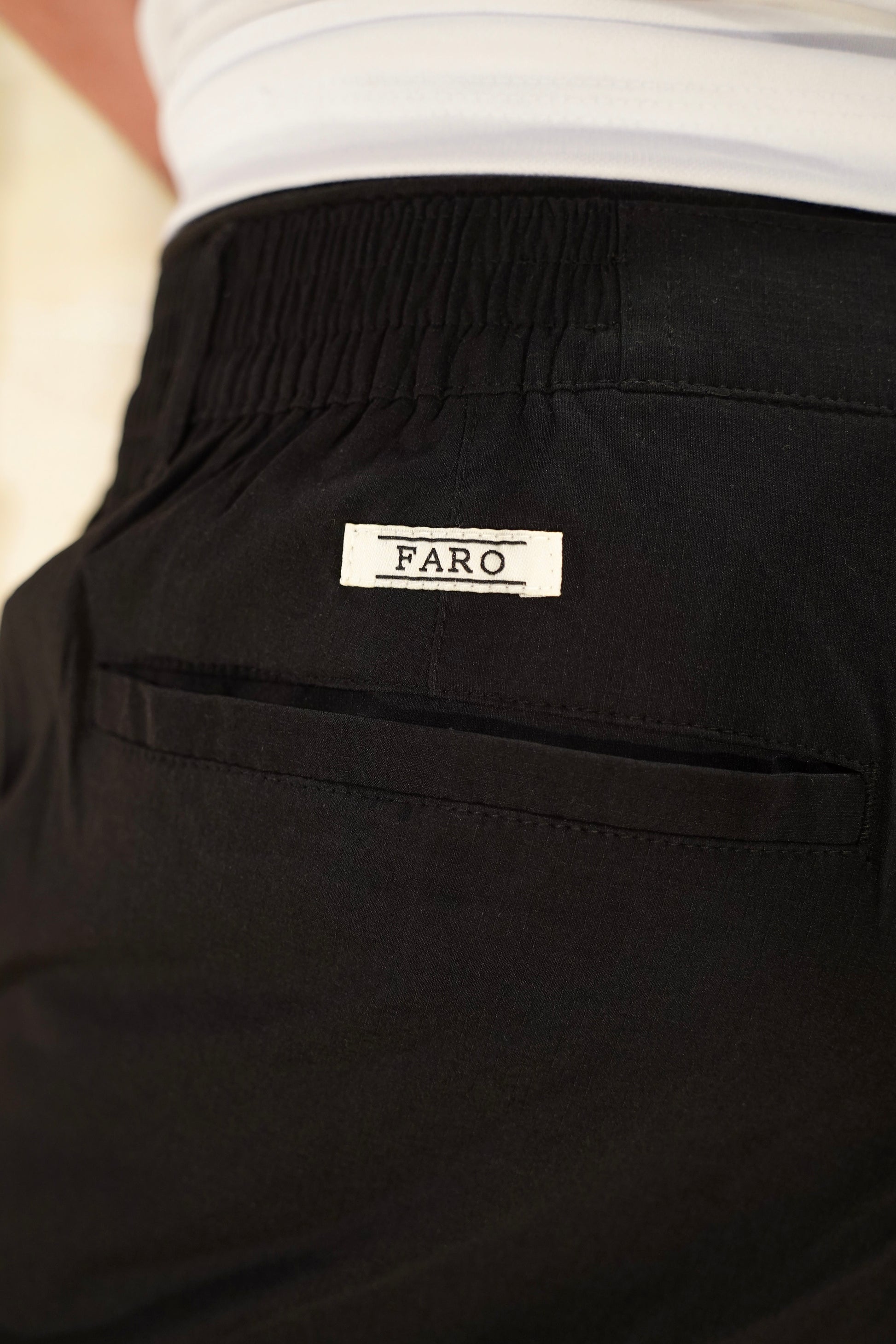 The FYC-703 short pants blend polyester and elastane to deliver a lightweight, breathable, and comfortable fit with added stretch for ease of movement. Featuring a small Faro logo on the back, these shorts offer subtle branding and practical comfort, perfect for active or casual wear.